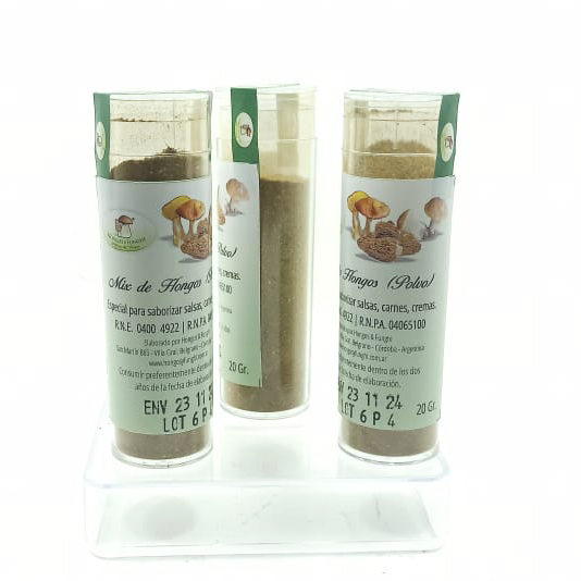 Polvo de hongos gourmet elaborado con hongos deshidratados. Ideal para sopas, salsas, carnes y risottos. Sabor intenso, 100% natural.